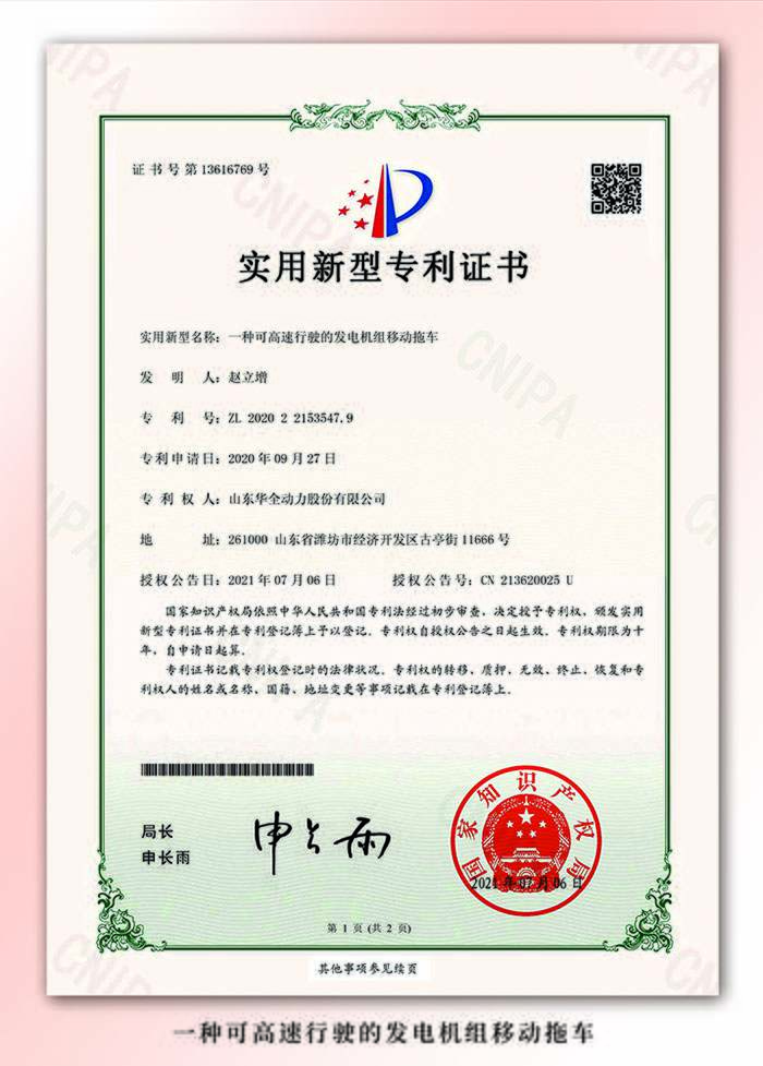 華全電力高速移動拖車式發電機組,自問世以來,就因為其多種優秀的特性,被世界各地的用戶所喜愛。華全電力移動拖車式發電機組已經取得國家專利,它有哪些亮點?